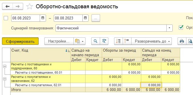 - В отчете ОСВ, балансе и в анализе бизнесе мы уже видим, что в будущем должны эти 6000 поставщику, а в отчете Расчеты с поставщиком этих данных не видим.
